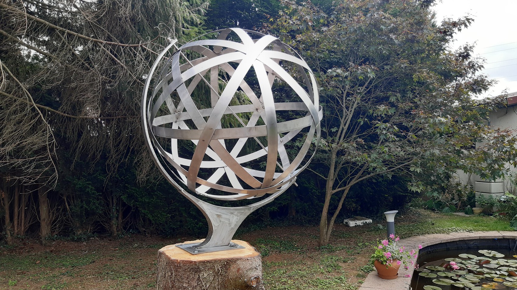 Mobile,globe en inox 124cmx105cm 36kg en déco dans un jardin d’agrément
