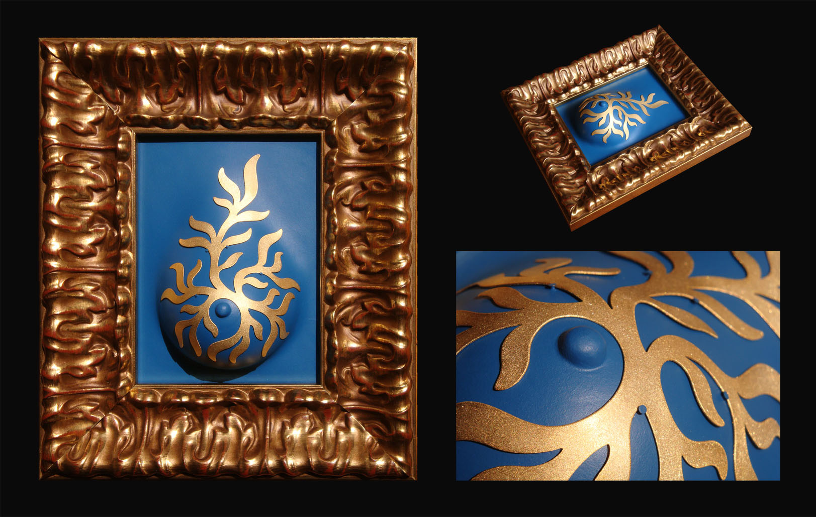 Les bijoux sont réalisés sur mesure, chaque pièce est unique comme la femme qui le porte. Ils peuvent être plaqués or ou argent. Très élégants en soirée sous une tenue semie transparente. Le cadre sert d'écrin lorsque le bijoux n'est pas porté. Cuivre et or, Dimensions variables