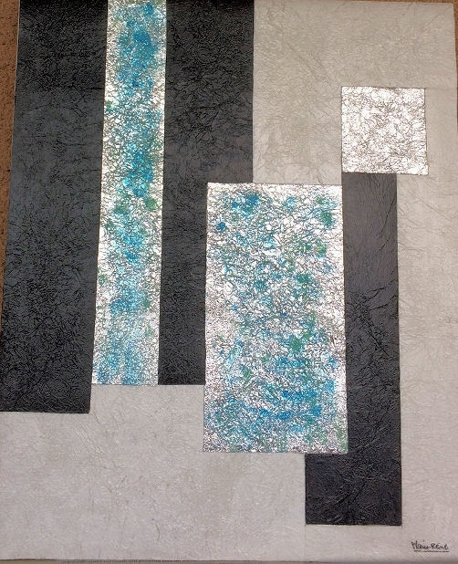 « DE-CI, DE-LA» CREATION 2016 SUPPORT : TOILE CHASSIS DIMENSION : 45,5 x 65 TECHNIQUE : PEINTURE ACRYLIQUE, PAPIER DE SOIE, PAPIER ALU PRIX : 80 €