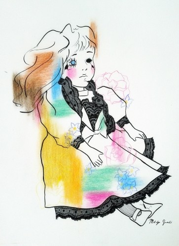 recherche graphique aux pastels sec et encre. Dimension : 32 x 41