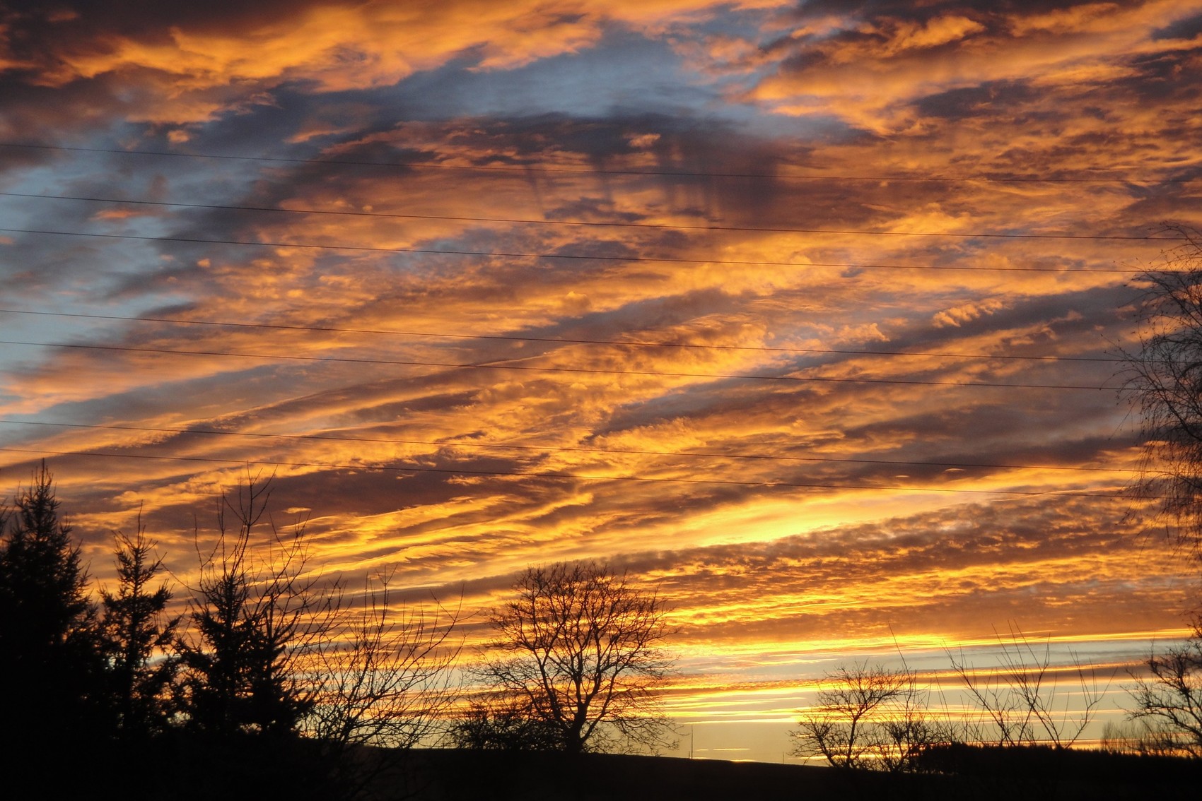 Un coucher de soleil qui embrase tout le ciel, avant une nuit qui sera glaciale.