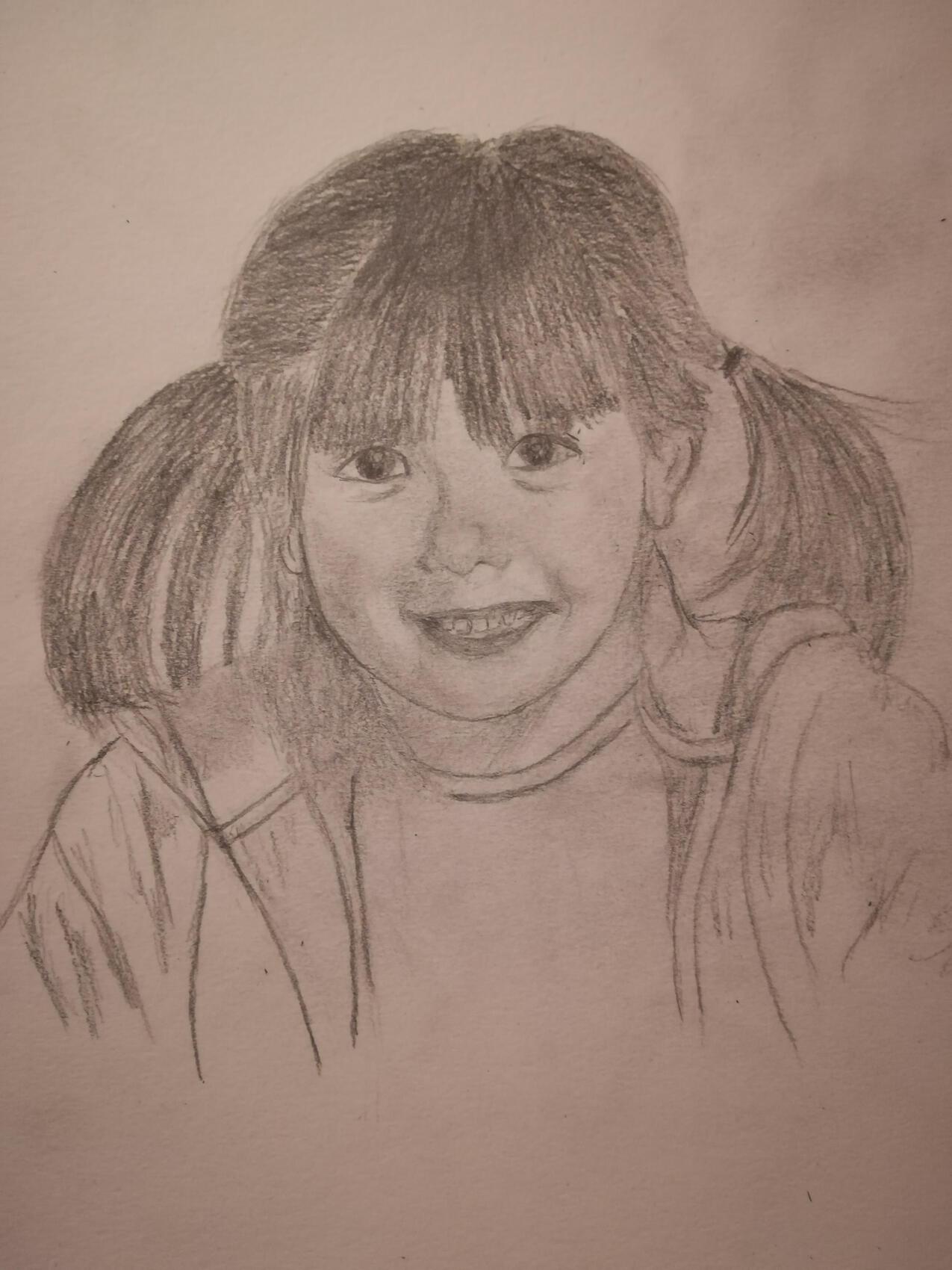 Croquis de ma fille cadette à partir d'une photo prise à l'école maternelle.