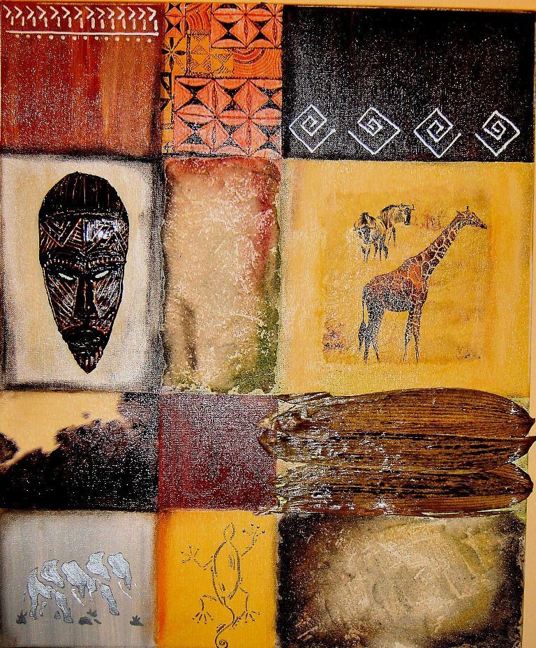 Acrylique sur toile - 60x50 - Inspiration africaine avec collage, pigments et medium.