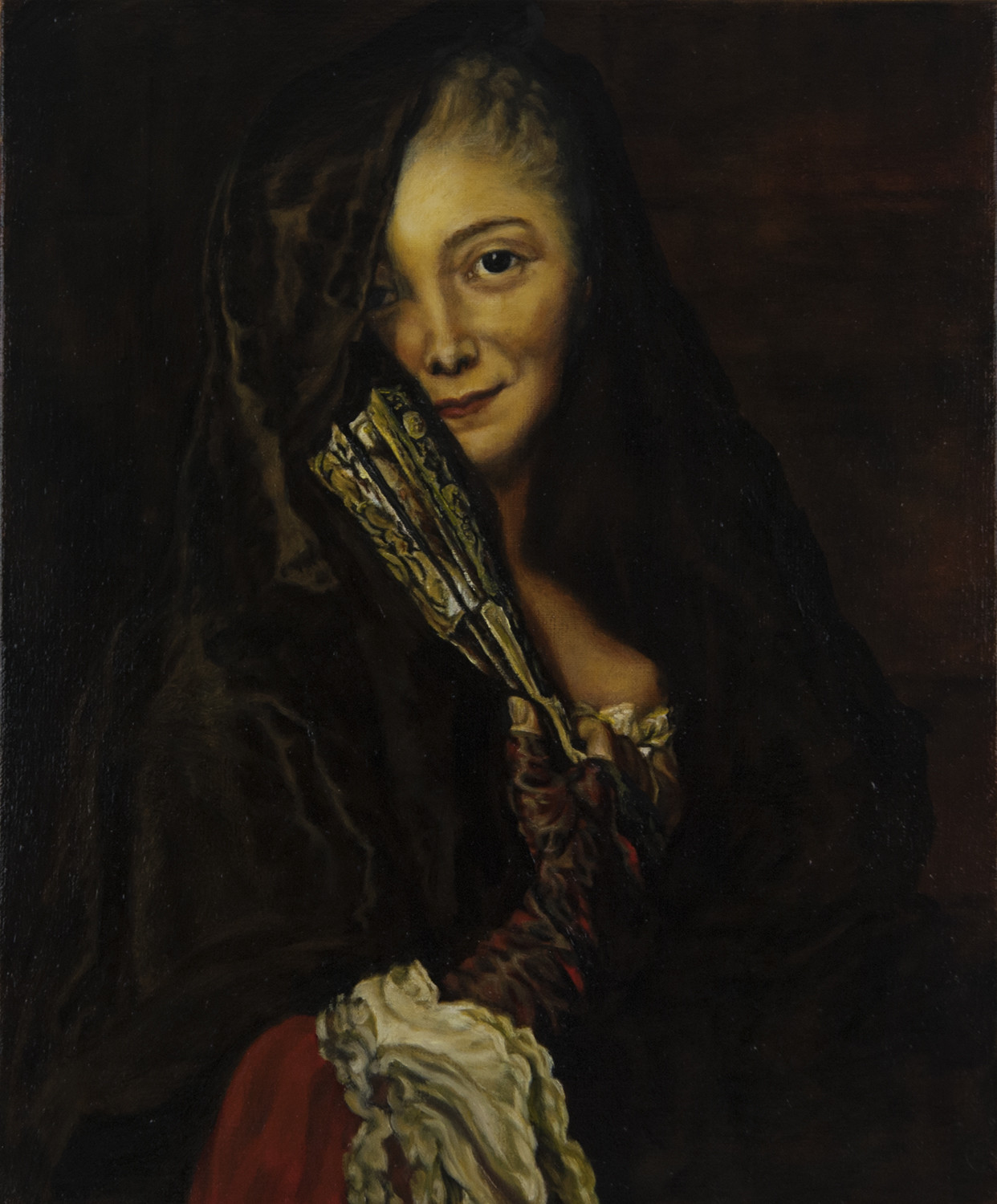 Huile sur toile 46cm x 38 cm. La technique utilisée est celle du peintre Flamand Van EYCK du 14° siècle. copie de cette toile de A ROSLIN
