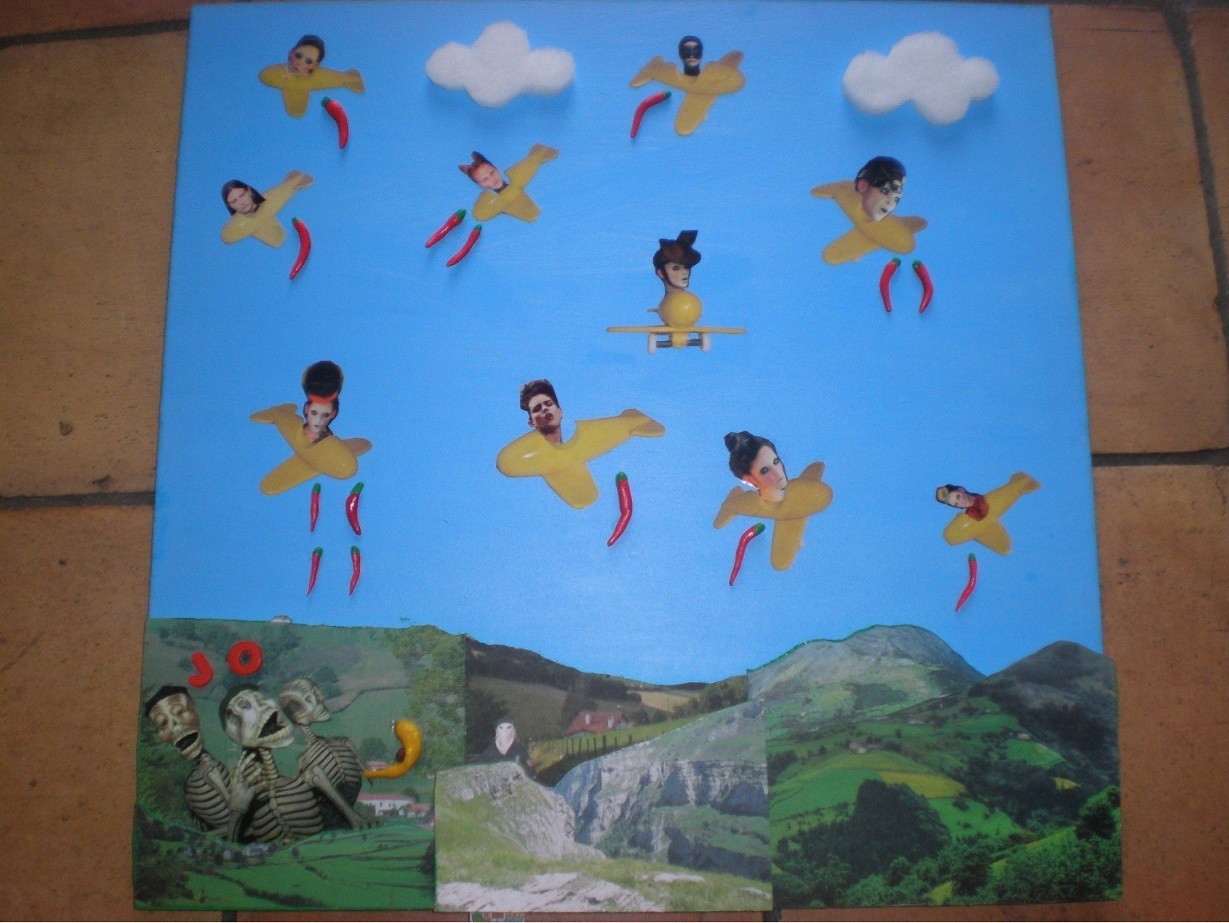 Remix de Guernica,tableau réalisé à l'aide de peinture, de collages de photos et de pâte fimo.