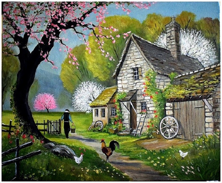Magnifique toile de ce paysage campagnard avec des couleurs qui nous amènent de la gaiëté.