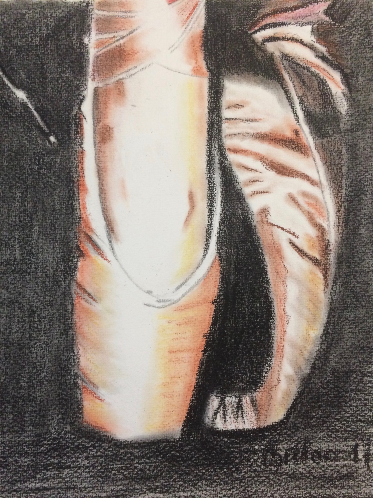Octobre 17 - Papier blanc 240 g - 28 * 22 - pastels, fusain, sanguine - D'après photo - Ces chaussons de pointe ont représenté tant pour moi...