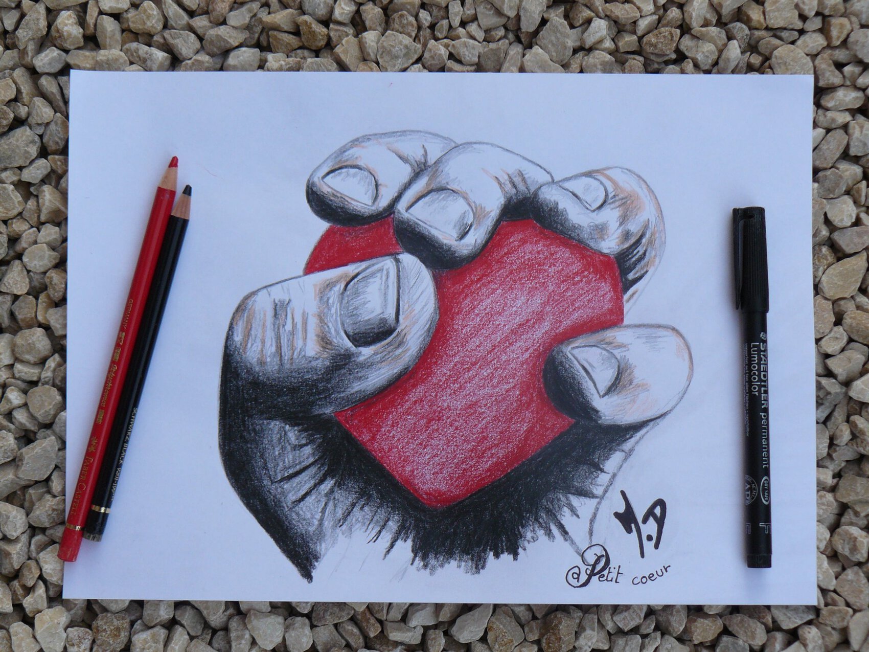 Dessin de David M " Mon petit cœur, Avec toi je veux vivre chaque instant, Trouver ma moitié pour finir mes jours, Pour le meilleur et pour le pire, Aimer à la folie rien de plus jolie dans une vie, Fais moi rêver " The Artist M.D