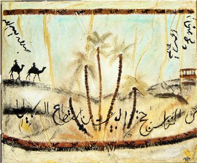 Acrylique sur toile - 55x46 - Pâte de structure, craie pastel. Créé lors de ma préparation au Rallye Aïcha des Gazelles du Maroc édition 2009.
