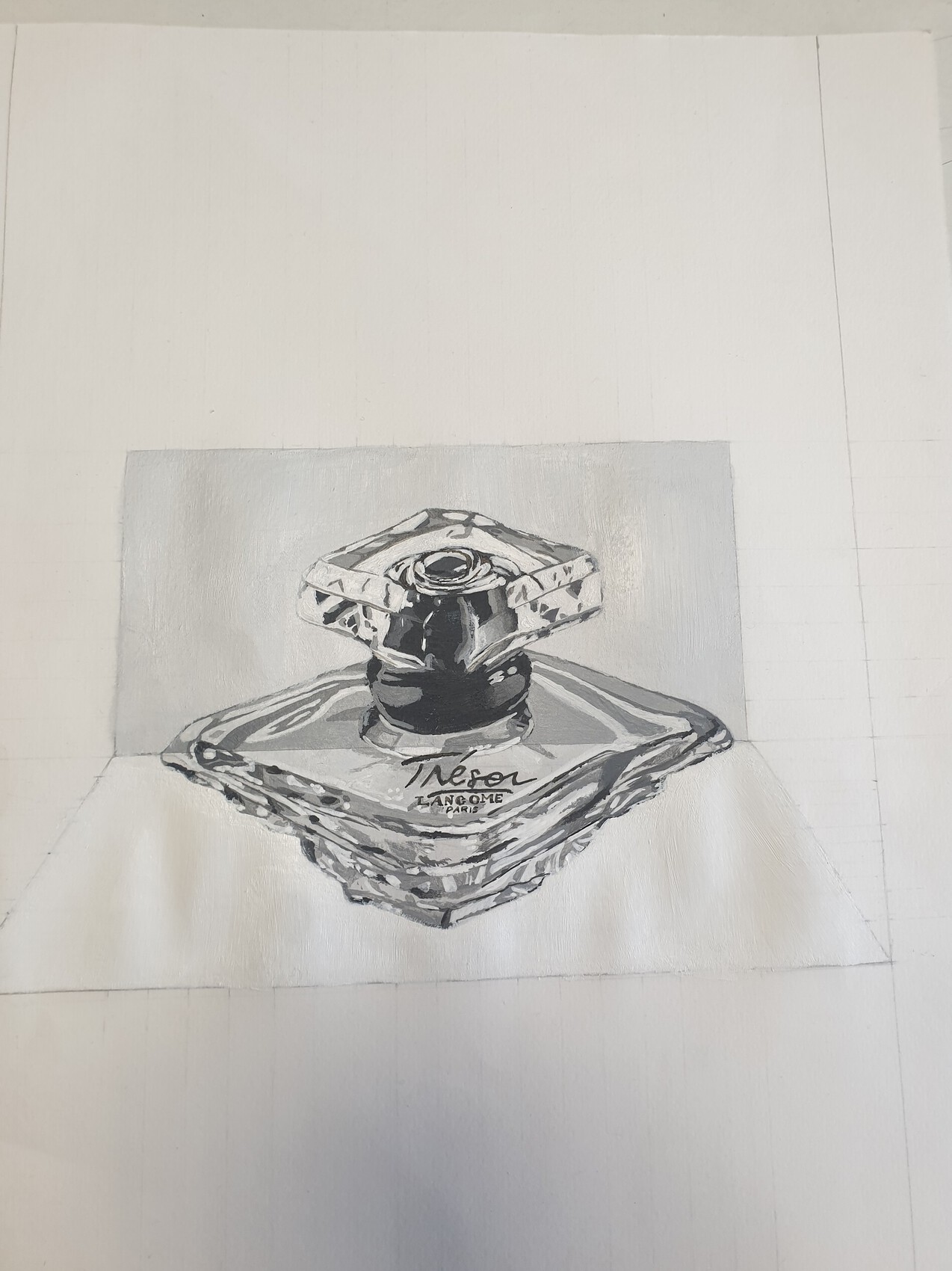 Parfum sur une feuille pliée peinte à l'acrylique