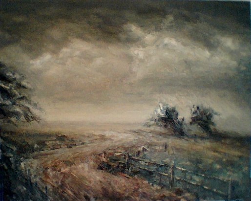 Paysage avec chemin un jour de grand vent. Huile sur toile 50x40 cm. 2007.