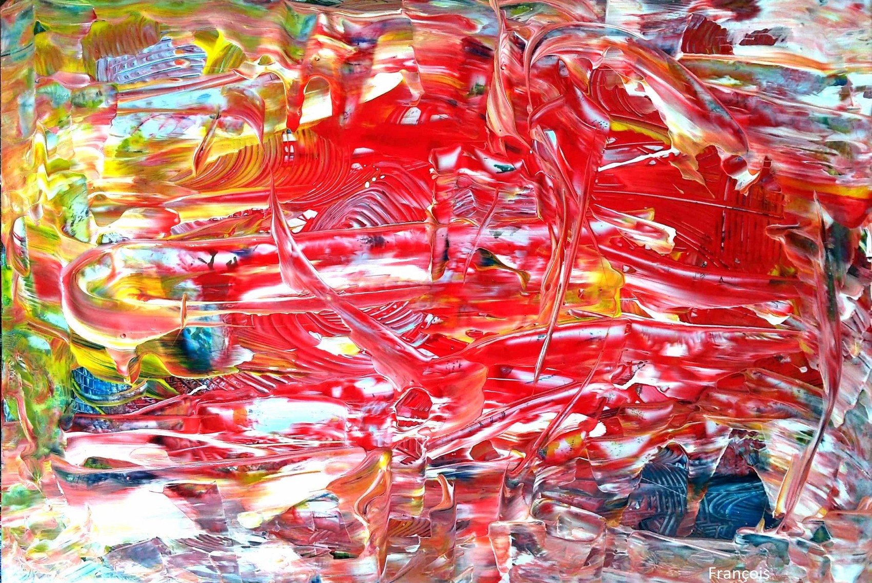 peinture intuitive abstraite réalisée sur feuille pvc transparente format 40*30 cm
