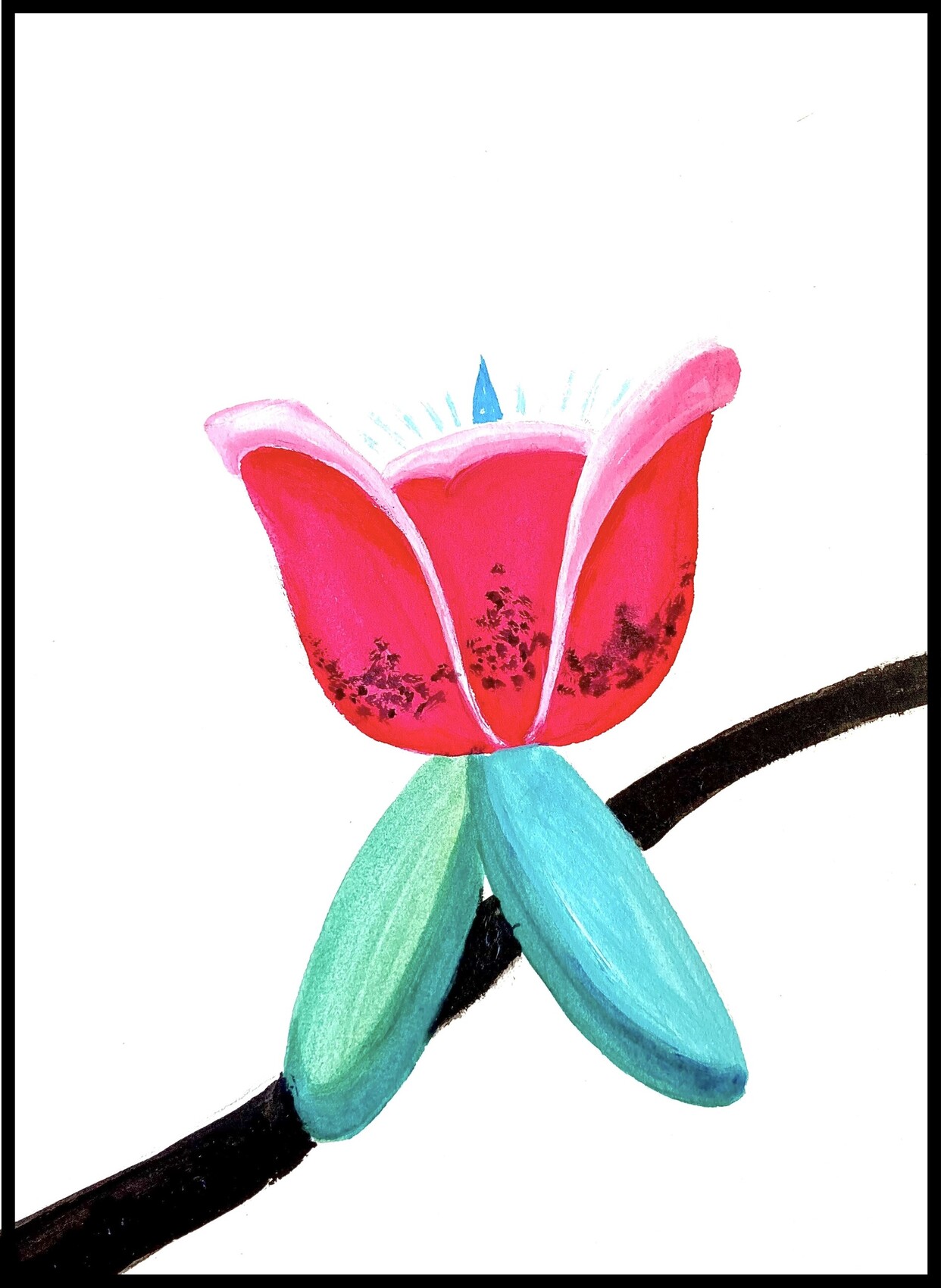 Acrylique, janvier 2025, 29,7 x 21 cm. La forme de la fleur avec des couleurs imaginées = Muriel Reulet = Acrylic paint, 2025. The true shape of ins flower with imagine colours.