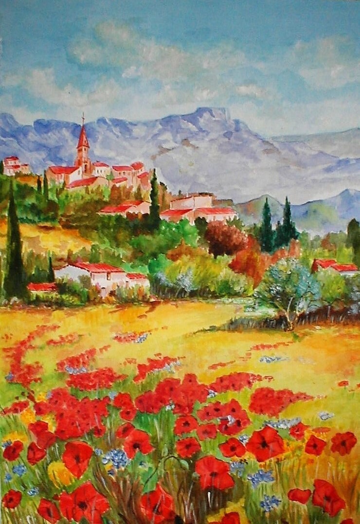 PAYSAGE CÖTE D'AZUR aquarelle 55x35.5