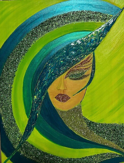 Reine des eaux: acrylique et techniques mixtes, 60x40