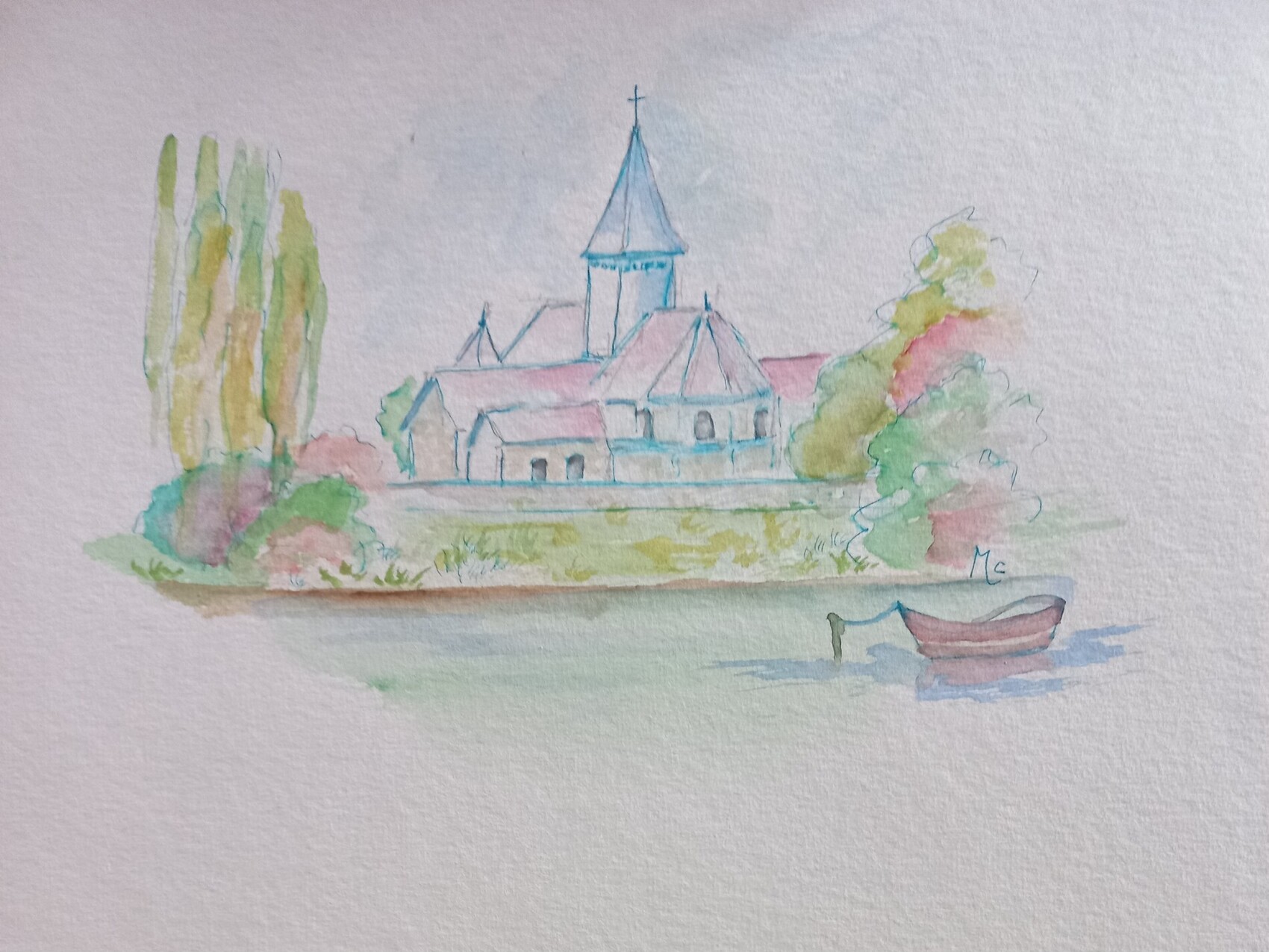 Aquarelle bord de Seine à Porte-joie dans l'Eure - 2