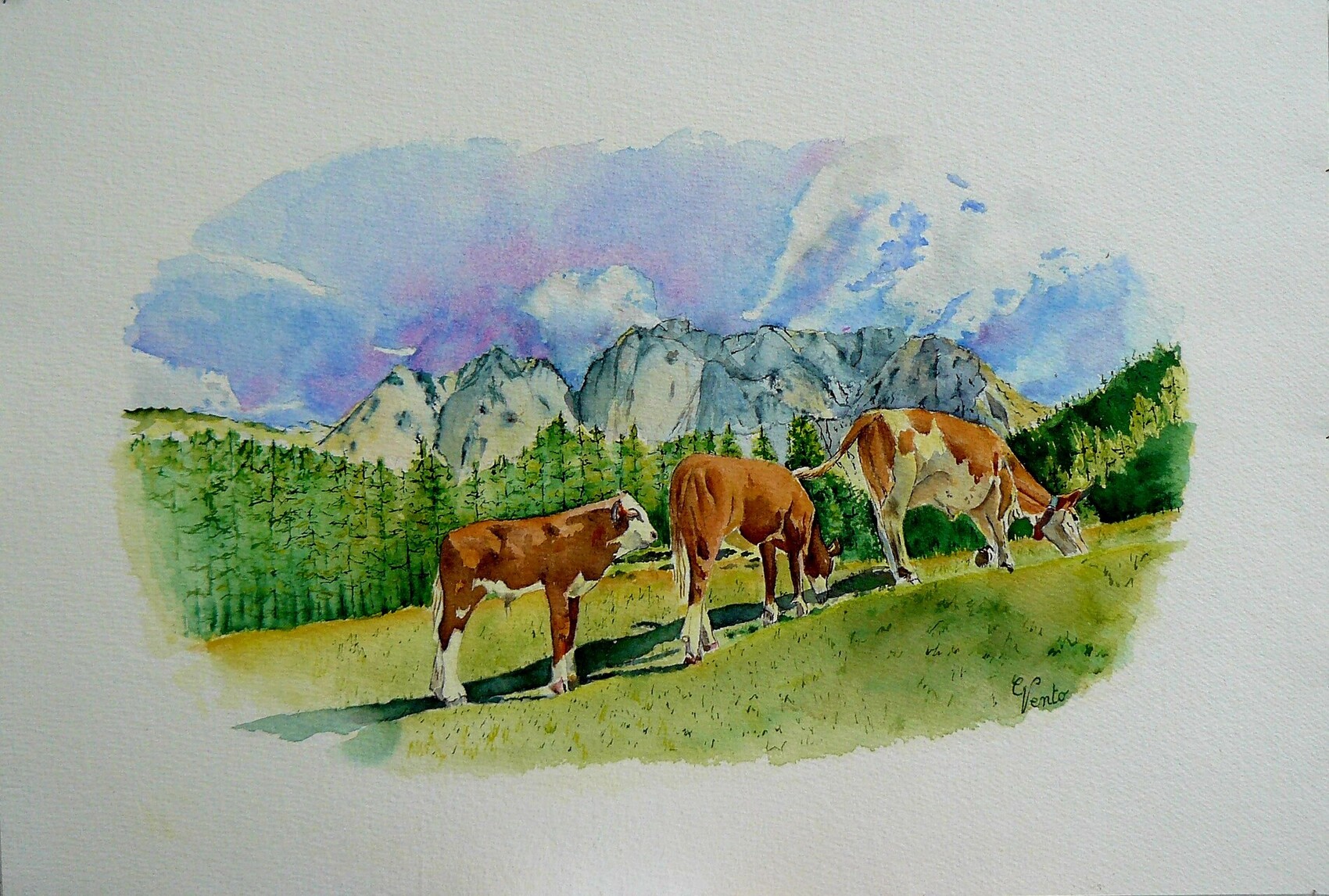 "Beauchamp 1905" 36X26 Aquarelle
