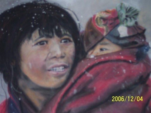 mère,enfant ,neige