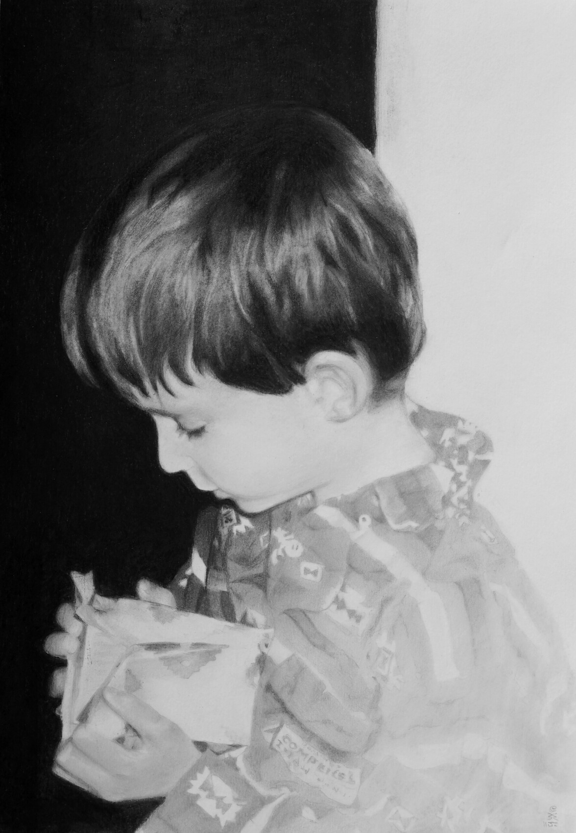 Portrait réalisé au fusain et graphite