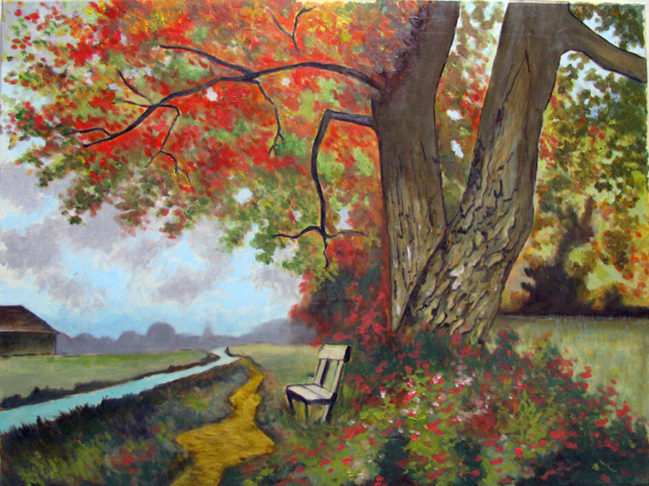 L'automne: Le banc, des arbres et le chemin