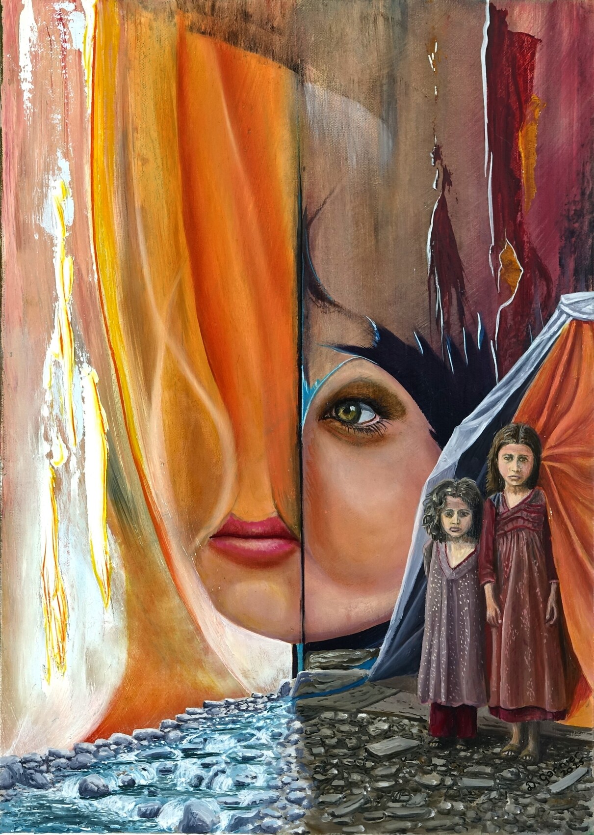 "Les petites fenêtres" Huile sur toile de 50 cm x 40 cm
