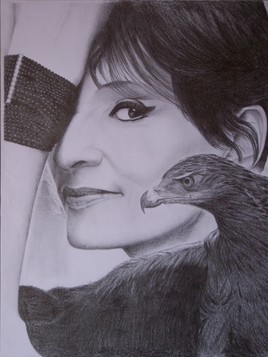 Une longue dame brune et un aigle noir