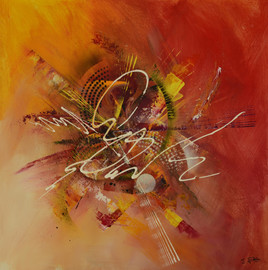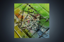Tableau abstrait à la peinture acrylique style art déco : Fractum Est