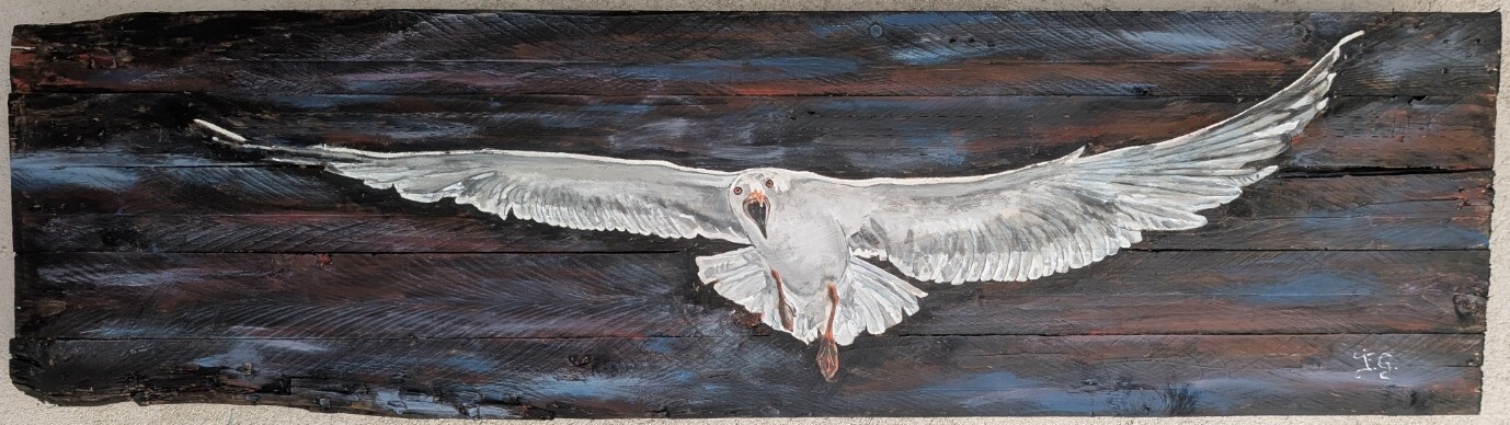 Goéland leucophée de Palavas, peinture sur bois de palette 145 / 46 JfG