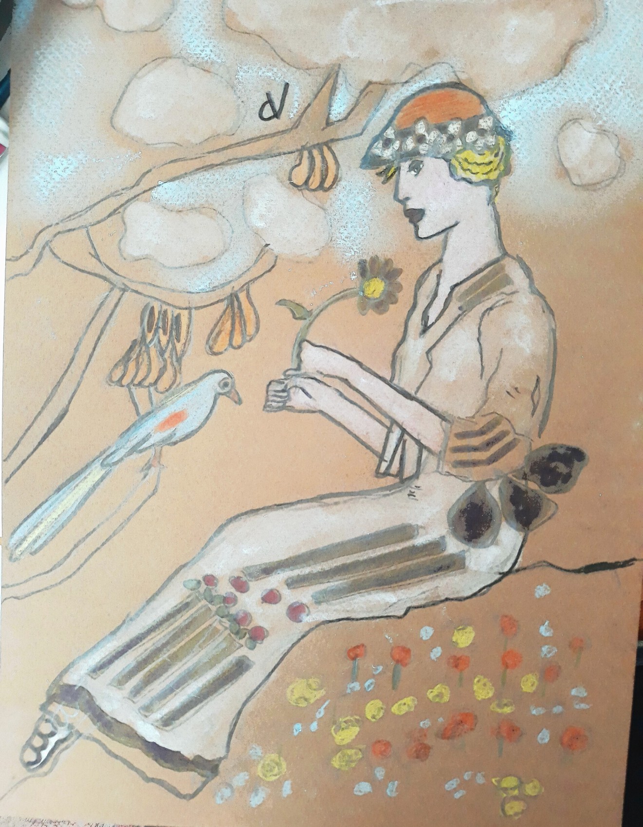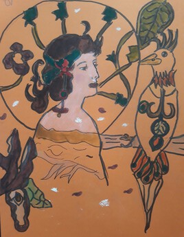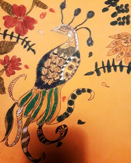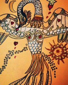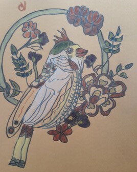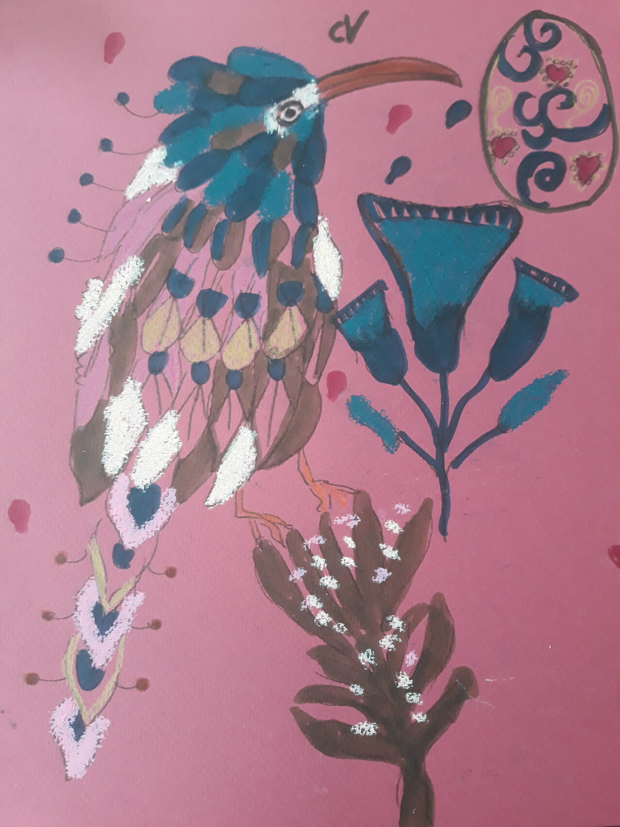 Oiseau égyptien et oeuf magique Et fleurs de lotus