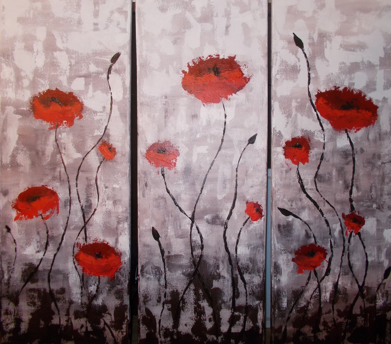 Triptyque coquelicots impressionniste