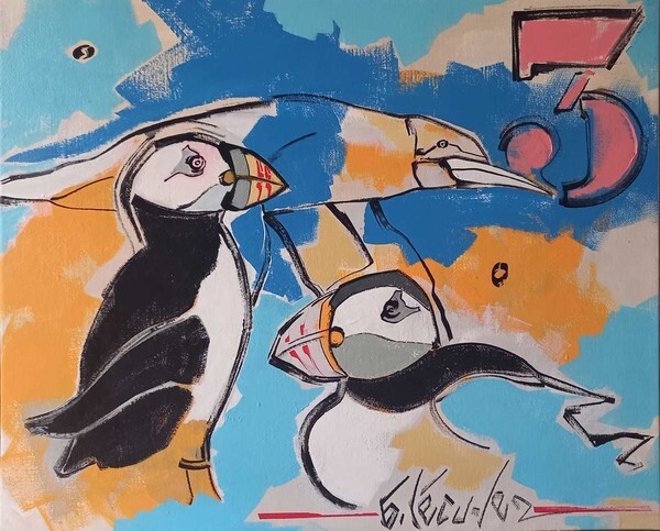 FOU DE BASSAN ET MACAREUX PEINTURE BRETONNE