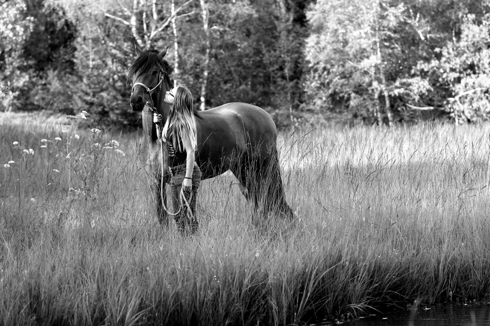 black & white horse