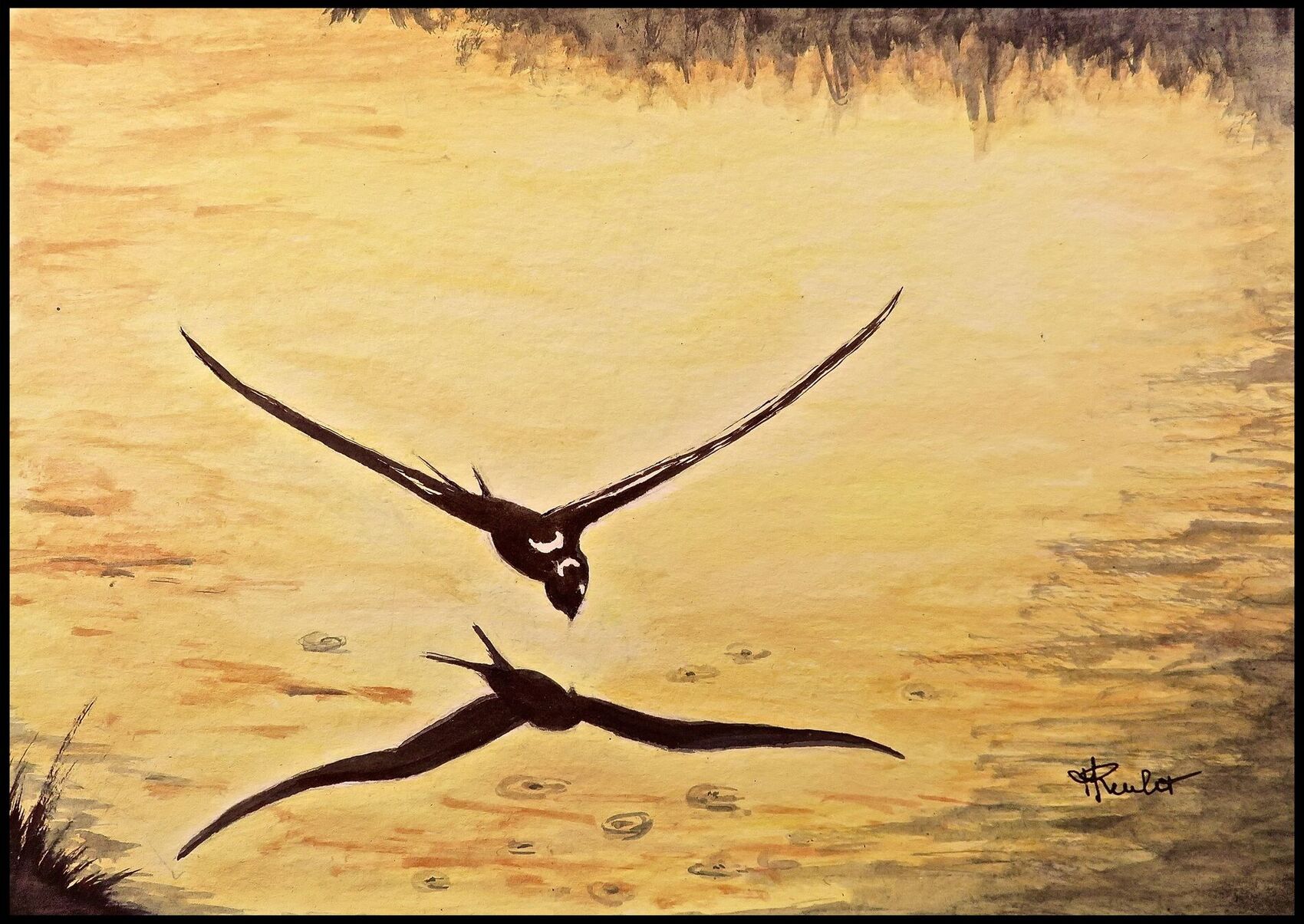 Hirondelle rustique pêchant au soleil couchant / Painting : a rustic swallow fishing at sunsetMuriel Reulet2