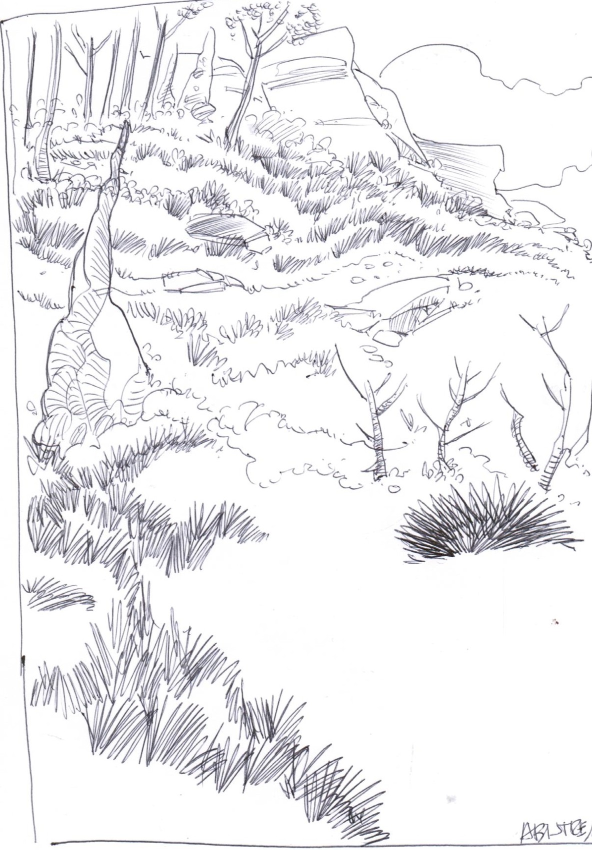 Buisson ardent...Feutre et lavis...