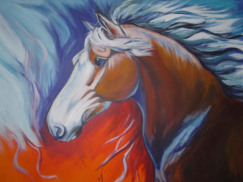 Cheval bai, bleu et feu.