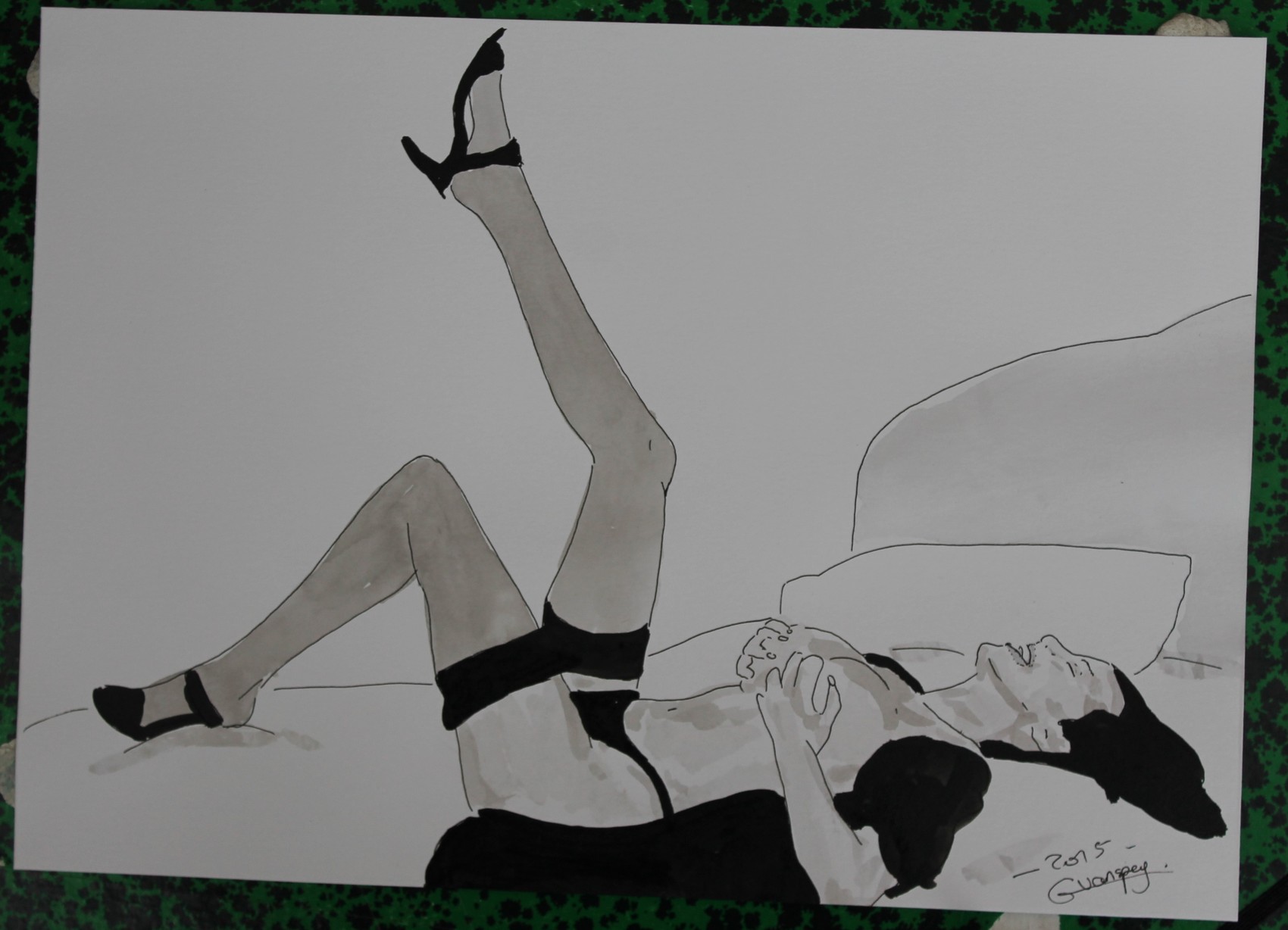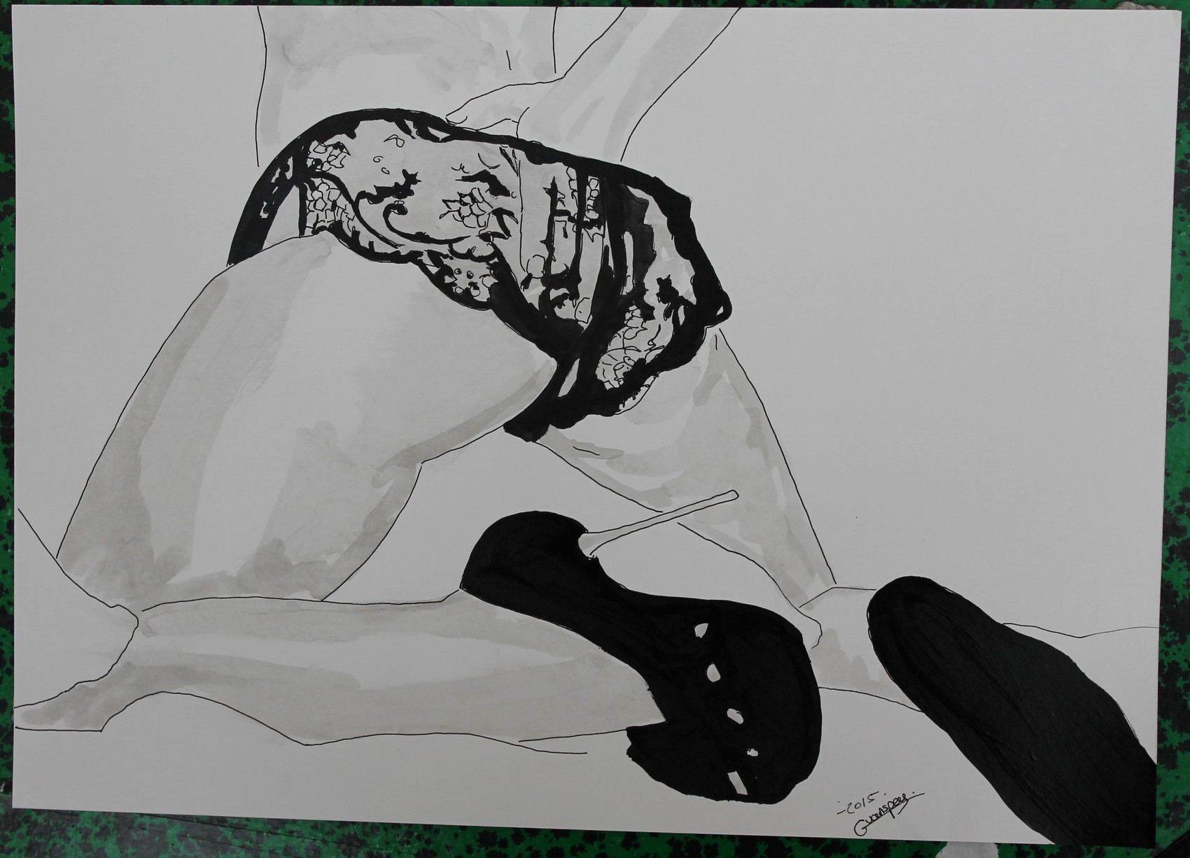 dessin nu féminin erotique portrait "Jeu de dentelle"
