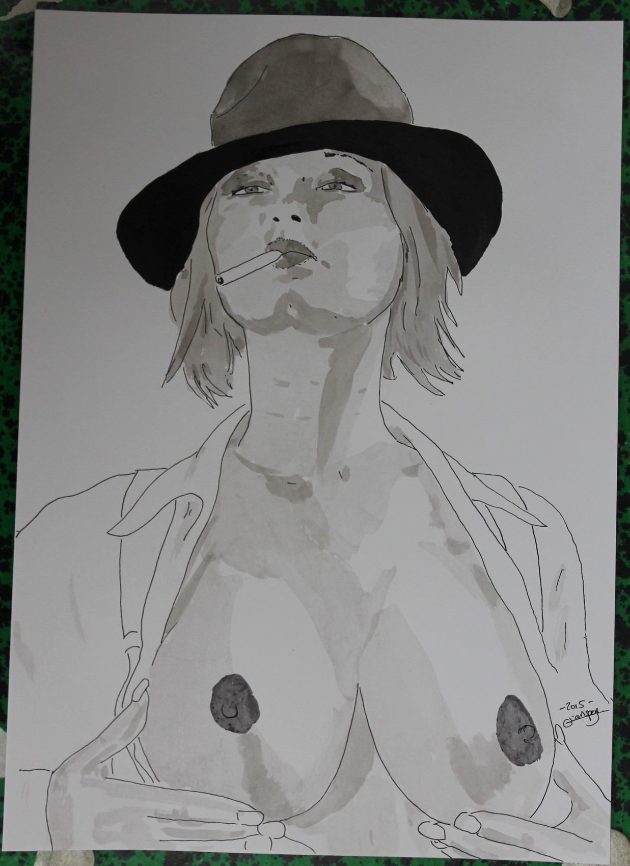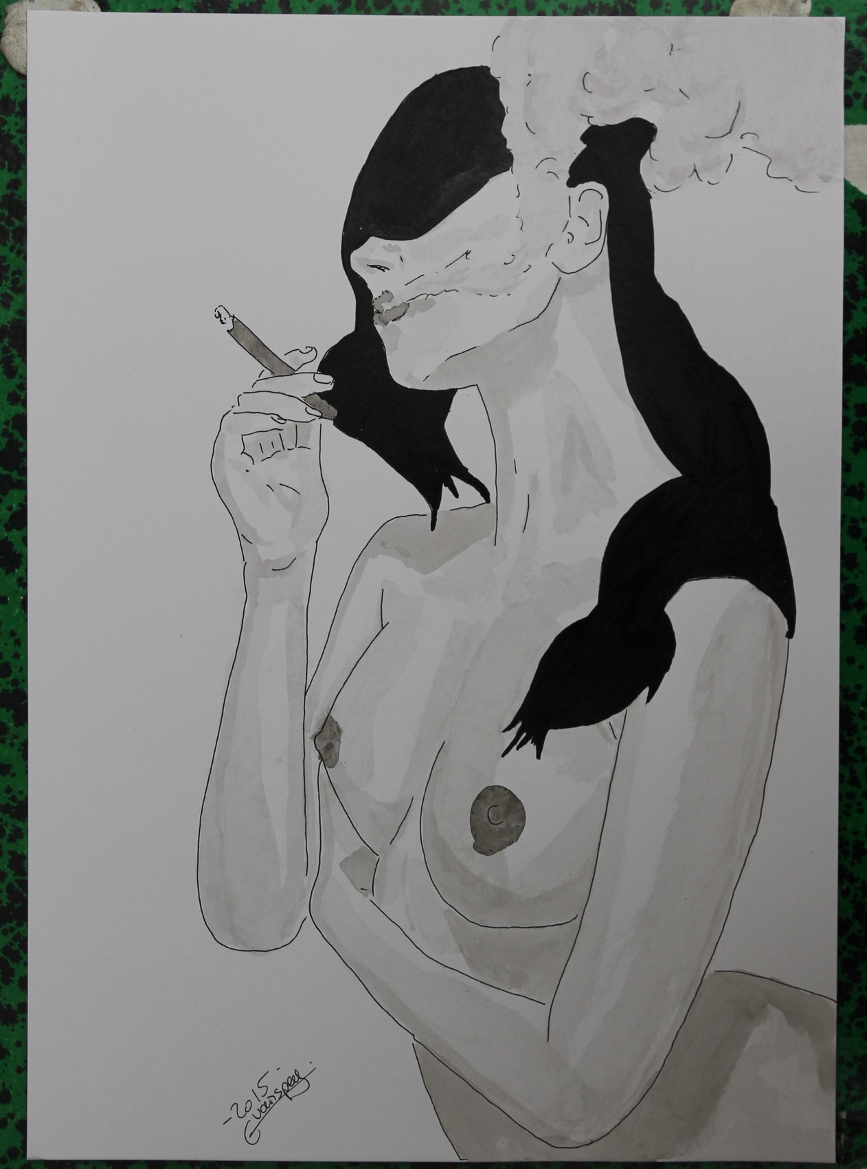 dessin nu féminin erotique portrait "Cigarette"