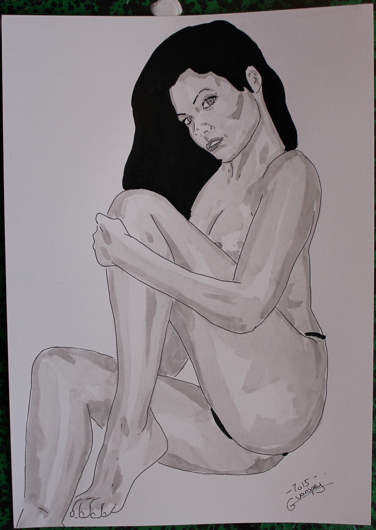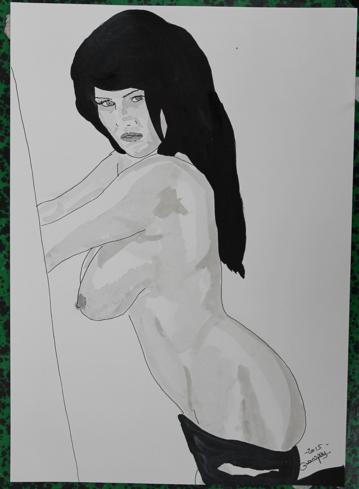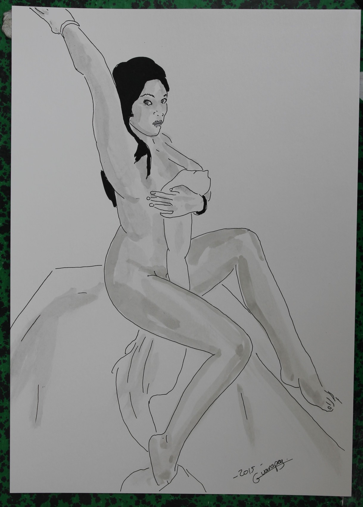 dessin nu féminin erotique portrait "Bath"