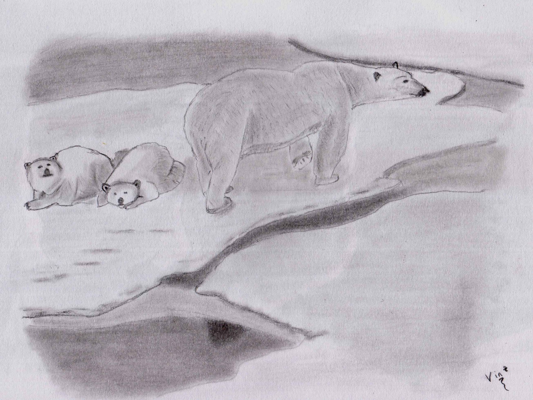 Mère ours blanc et ses petits