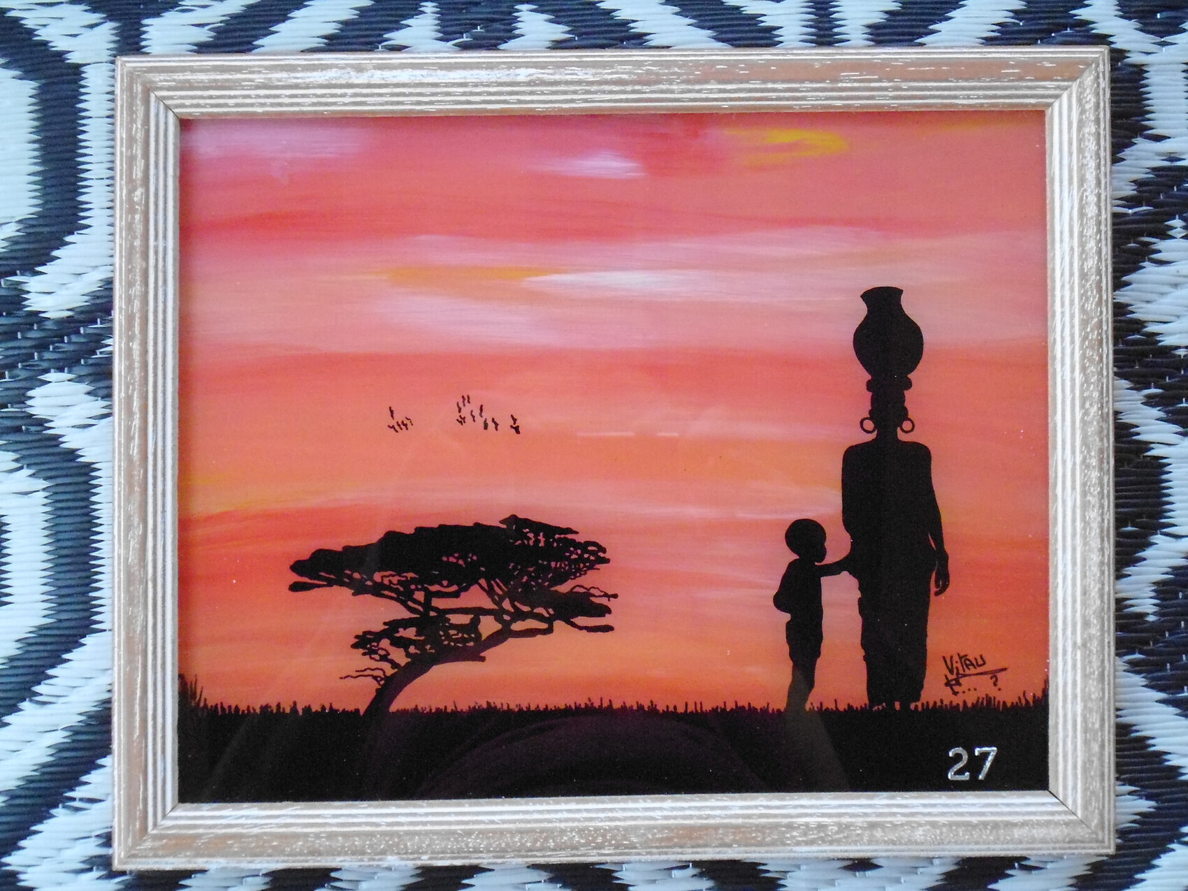 Couché de soleil, la femme et l'enfant.