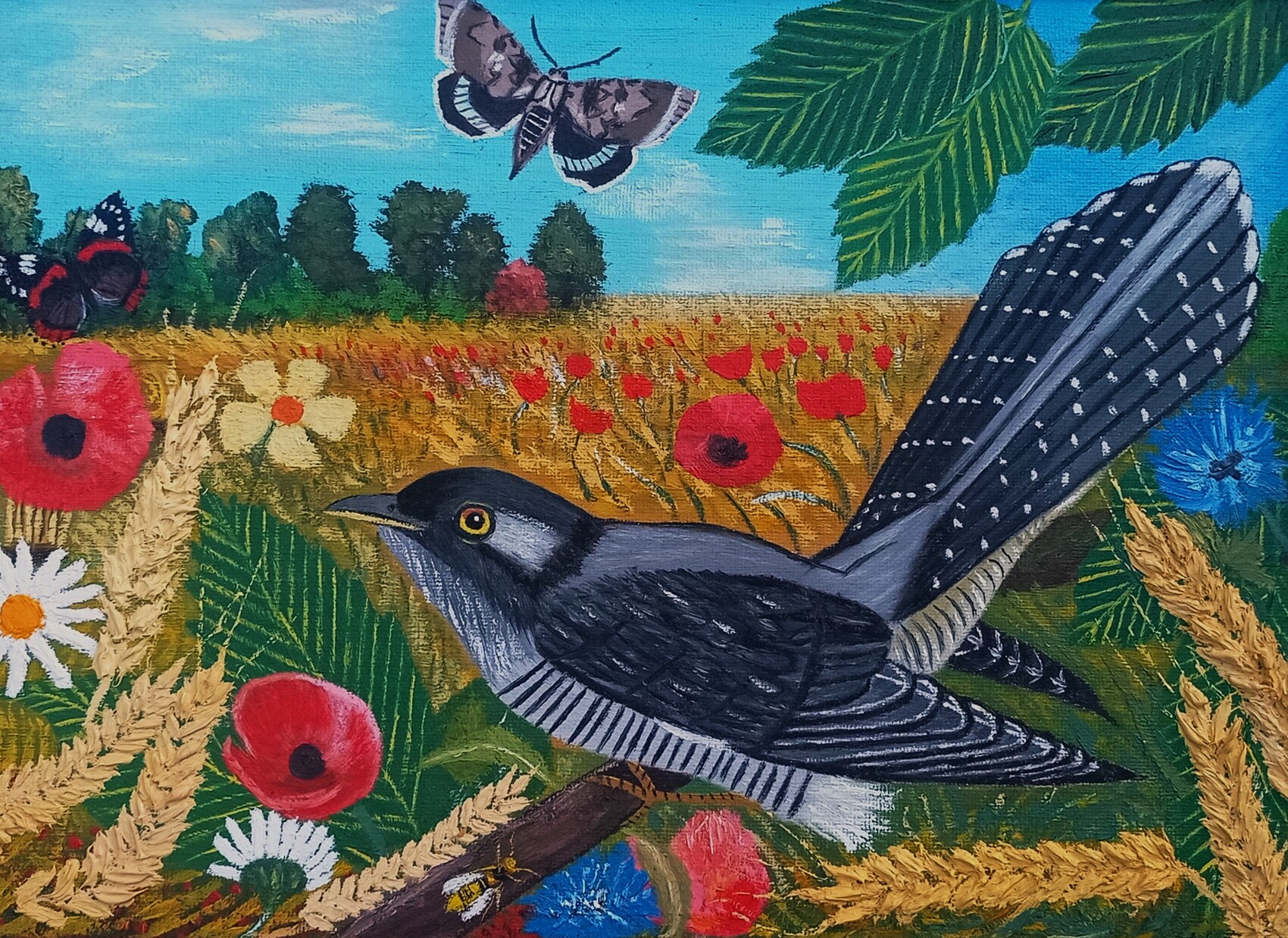 Un coucou dans un champ de blé.