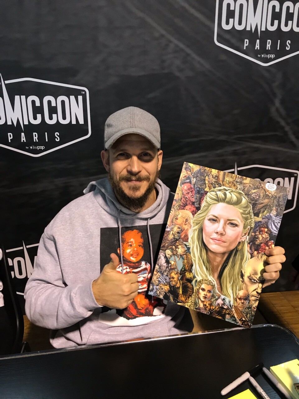 exposant à la Comic Paris avec de magnifiques rencontre et rencontre avec Floki de la série Vikings pour une dédicace de mon Tableau Lagertha