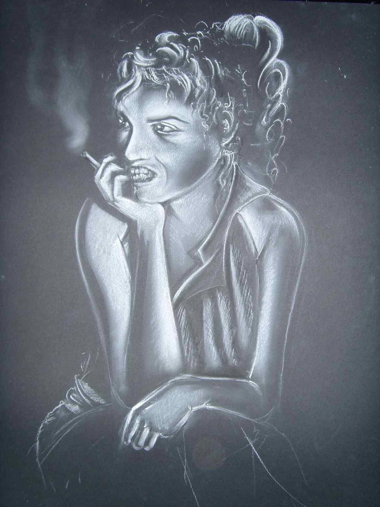 Rien de très original, simplement un petit pastel sec blanc sur fond noir...