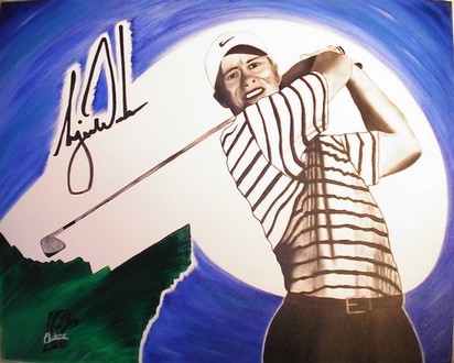L'ATELIER DE TREFLE .Vente directe de l'atelier de l'Artiste *Titre de l'Oeuvre: "6eme SENS" *Date de création : Septembre 2007 Oeuvre originale et unique, peinte et signée par Lfx CHATARD, artiste présent dans le dictionnaire Larousse "cotation des Artistes", oeuvre côtée 890 € chez DROUOT. Livrée avec facture et Certificat d'Authenticité. Une toile très soignée, lumineuse , aérienne et généreuse (format 25 P soit 81cm x 60cm) mettant en scène le N°1 du Golf, Tiger WOODS.