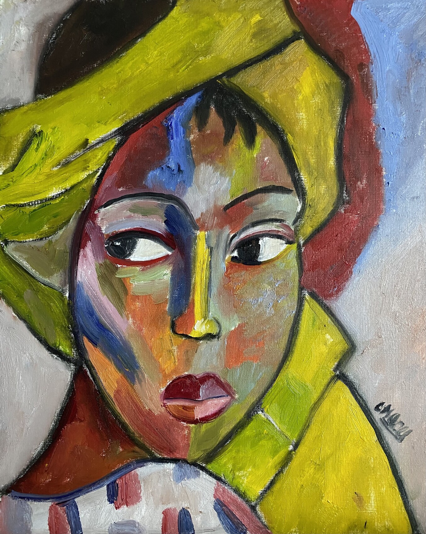 Il y a du fauve de la chaleur épicée du Musk et des tambours de cérémonie dans ce portrait. Votre inspiration fait émerger des touches à la Matisse sur un visage d'une force vitale admirable. Vous vous imprégnez d'œuvres d'un modernisme sensuel pour en faire votre miel et les interpréter avec une sensibilité émouvante. Je vous imagine dans un état proche du rêve quand vous saisissez vos pinceaux. J'aime votre grande sensibilité artistique.