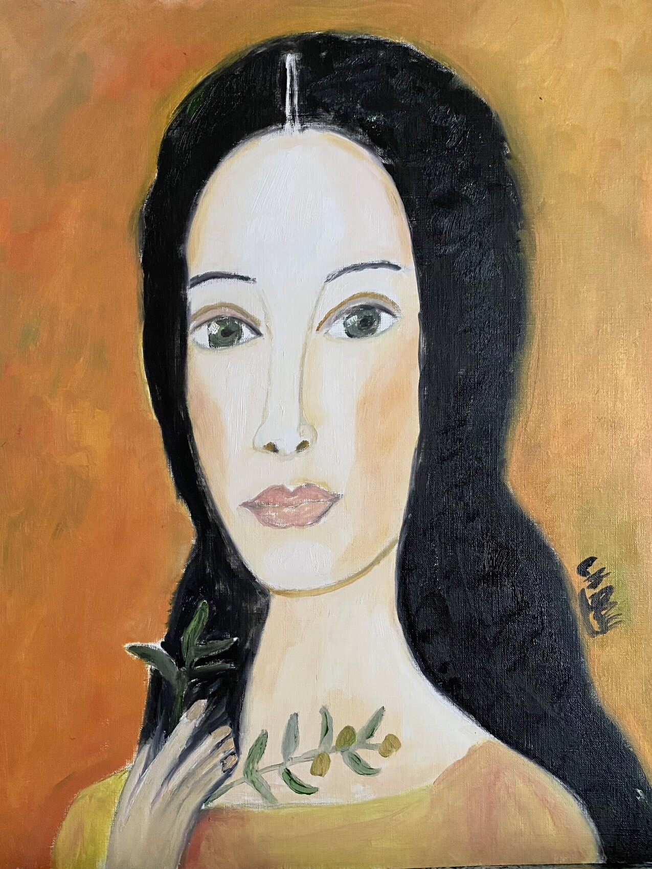 Huile sur papier 46/38. Le 20/02/22. Bien à vous, je vous présente "Colombe de la paix". Amicalement, Claire.