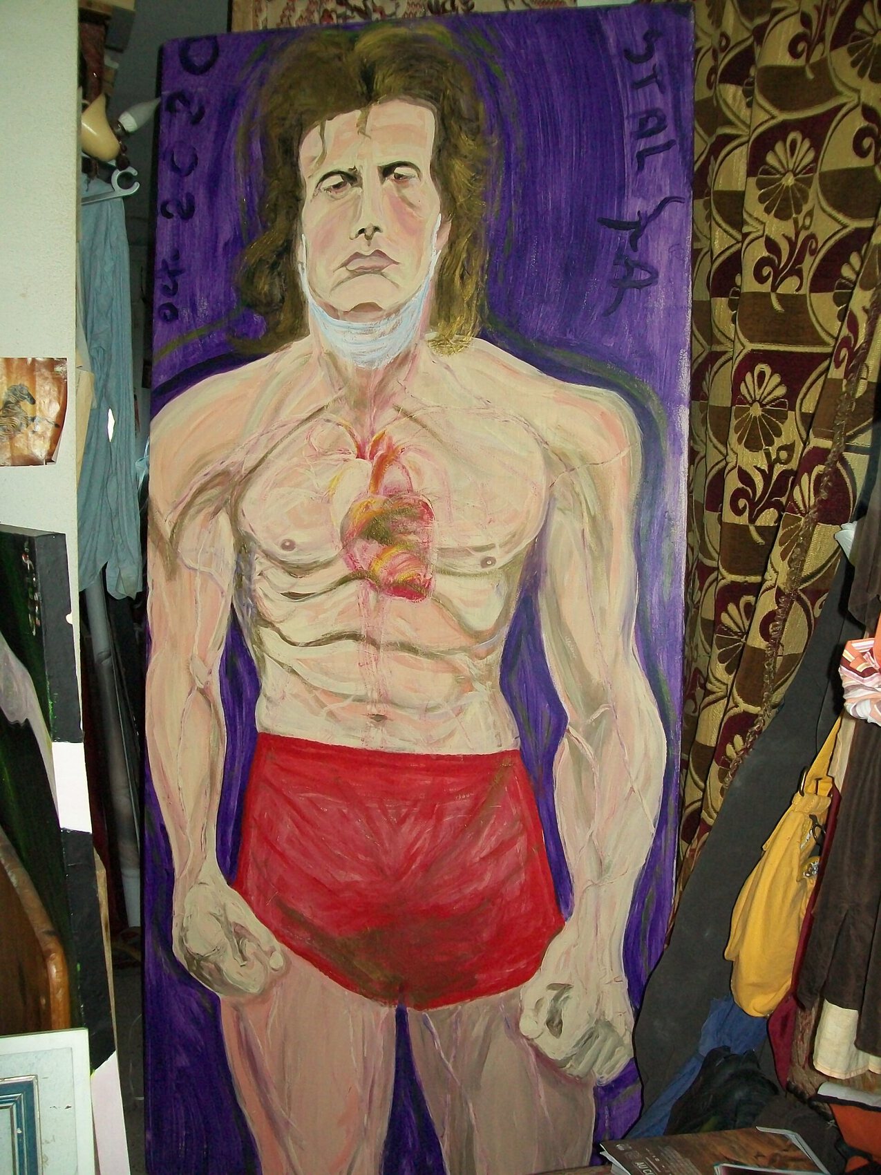 Acrylique sur plateau de table en bois massif de 90 kg , ( rien de moins ) , mesurant 200 cm par 90 cm par 4,5 cm , inspiré de la légende vivante Sylvester Stallone , et de l'actualité Covid qui se prolonge encore ... Pour combien de rounds de plus ... ? Peint par Stal Fa , à Montpellier ( France ) fin septembre 2020 ... ( voir beaucoup plus bas dans ma galerie ) , ressorti le 04 décembre 2021 .( froid ) . Livrable à Montpellier , prévoir 2 gaillards pour le transporter , réservé en priorité