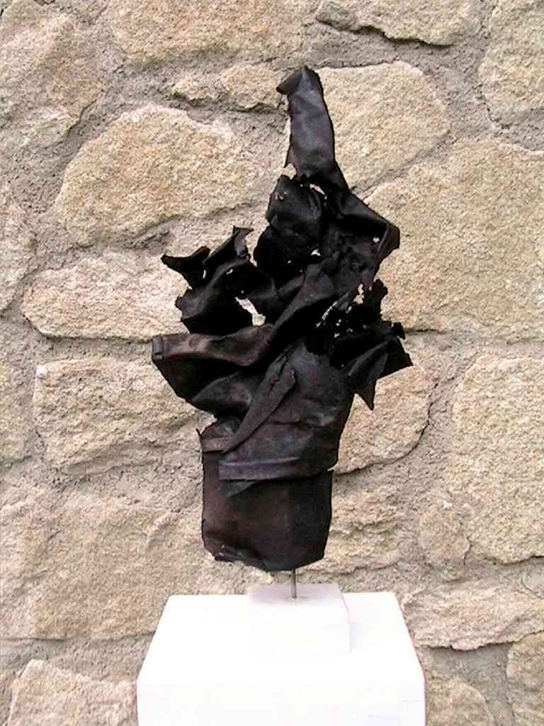 Sculpture en tôle froissée, fumée et vernie.Elle fait 35 cm de haut.