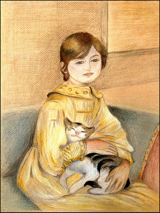 Bonsoir Marie , " Julie Manet avec le chat " une très belle réalisation avec beaucoup de douceur et de tendresse ! Bravo Marie