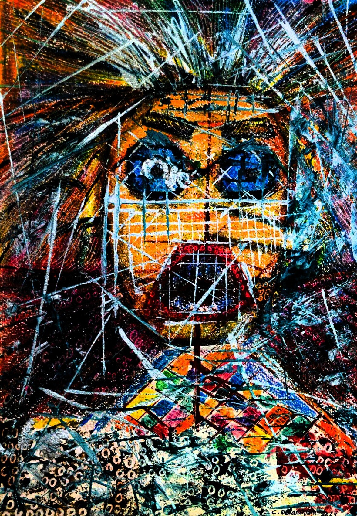 “L’Algorithme” est une œuvre qui me tient particulièrement à cœur. Réalisée au pastel avec des finitions en peinture métallisée, elle représente pour moi la fusion entre l’art et la technologie. Le visage stylisé et les motifs dynamiques symbolisent la complexité et la beauté des systèmes algorithmiques, tout en reflétant mon propre voyage créatif et ma fascination pour les interactions entre l’humain et le numérique.